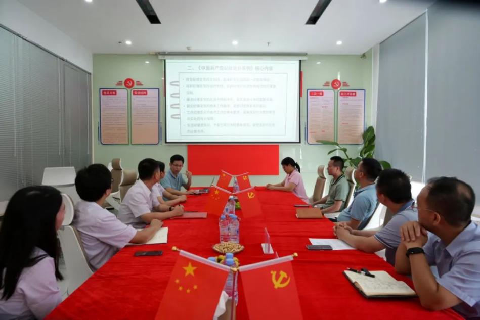 党委书记兰善红与参会人员共同开展了党的纪律教育学习,从《中国共产党纪律处分条例》修订历程到总则,再到分则和具体条款内容,兰善红书记一一做了解读,并督促大家作为党员干部未来务必进一步增强自律意识,严格约束操守,做一名守规矩、讲纪律的新时代合格党员。