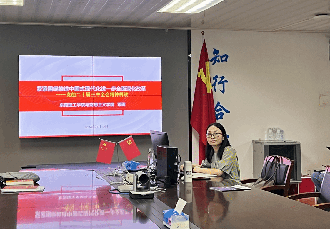 召开党的二十届三中全会精神宣讲会,邀请马克思主义学院邓雨老师作宣讲报告。党委书记兰善红主持,学院和生态中心全体教职工参加宣讲会。