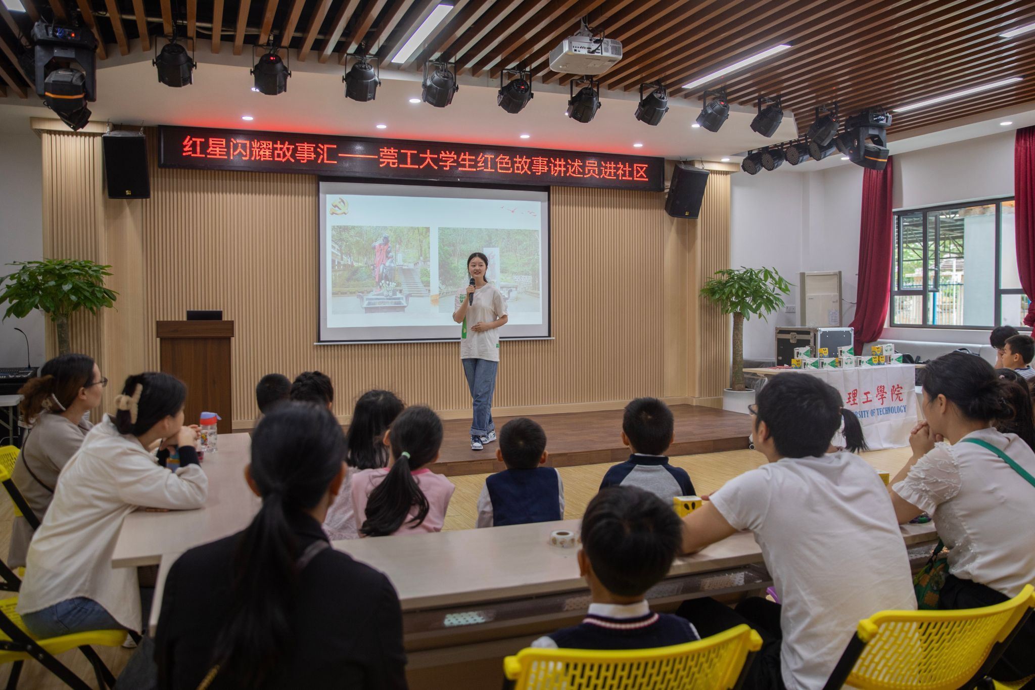 大学生红色经典故事讲述员进社区”活动在东莞市松山湖社区综合服务中心举行;此次活动面向周边社区的亲子家庭展开,旨在办好红色教育、讲好红色故事、传承红色基因,让红色文化不仅在校园中传播,也在社会上闪耀。杨碗义同学将革命先烈的英雄事迹带进社区,在孩子们心中播撒“红色种子”,为家长们树立红色模范。她希望把这样感人肺腑的红色故事分享给群众,呼吁大家要永远铭记革命先烈恩情,也要不忘初心,接续努力,为实现中华民族伟大复兴的中国梦而不懈奋斗。