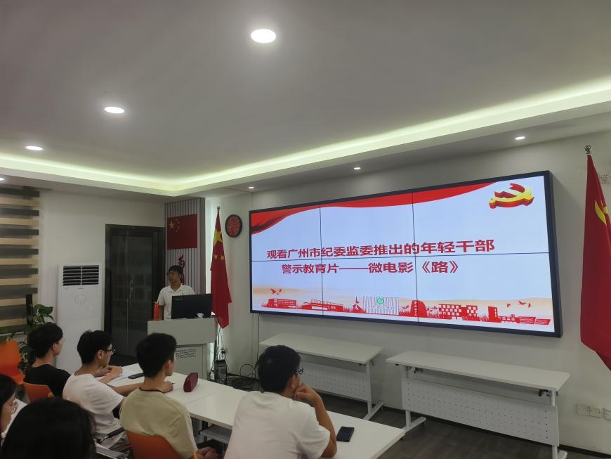土木与路桥工程系本科生党支部在综合实验楼12G401开展“以案为鉴知敬畏,清正廉洁守初心”主题党日活动,支部党员集体观看年轻干部警示片微电影《路》。本次活动邀请了13名发展对象参加,支部书记苏朗主持本次活动。