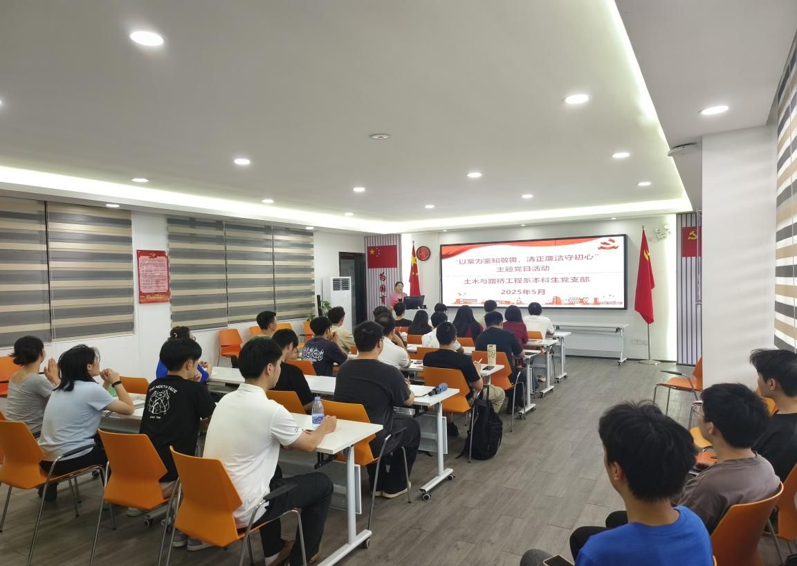 本次主题党日活动通过警示片观看、案例学习和交流研讨等形式,深入学习中央八项规定精神及党的作风建设要求,强化纪律意识、筑牢思想防线。土木与路桥工程系本科生党支部将持续巩固深化深入贯彻中央八项规定精神学习教育成果,以常态化学习教育与多元化实践活动,将作风建设融入党支部日常工作,引导青年党员和入党积极分子在新时代坚守初心、在新征程勇担使命。