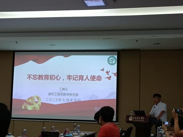 会上,从教37年、有着24年党龄的老党员刘洪涛老师结合其教书育人生涯谈对初心使命的感悟,青年教师党员、环建学院教工支部书记丁其乐表示要向刘洪涛老师学习,不忘育人初心、牢记育人使命,培养可堪大用、能担重任的建设者。