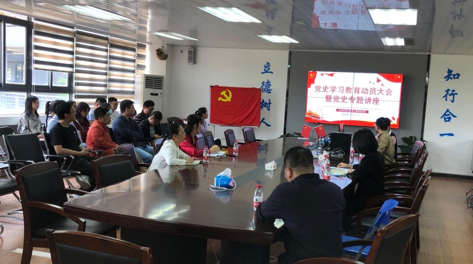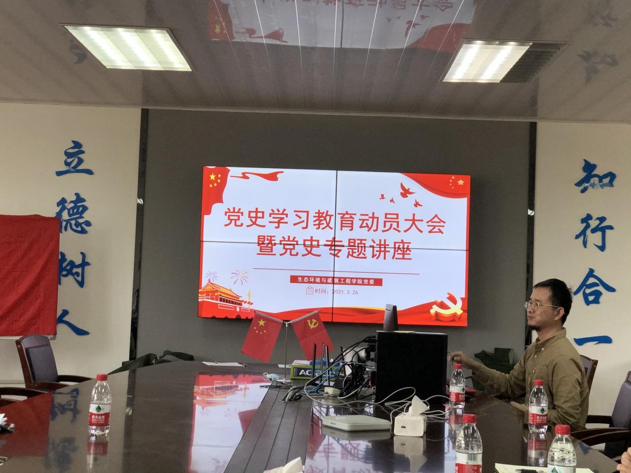 在12K205召开教工党员党史学习教育动员大会。会后邀请马克思主义学院党委副书记郭奕鹏博士开展以“习近平关于中国共产党历史的重要论述”为主题的讲座。本次活动由环建学院党委副书记诸小妮老师主持,环建学院全体教工党员参加了活动。