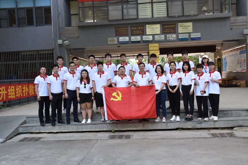 活动伊始,各位党员于环建学院正门口集合,以高昂的精神风貌与党旗合照,整装待发。
