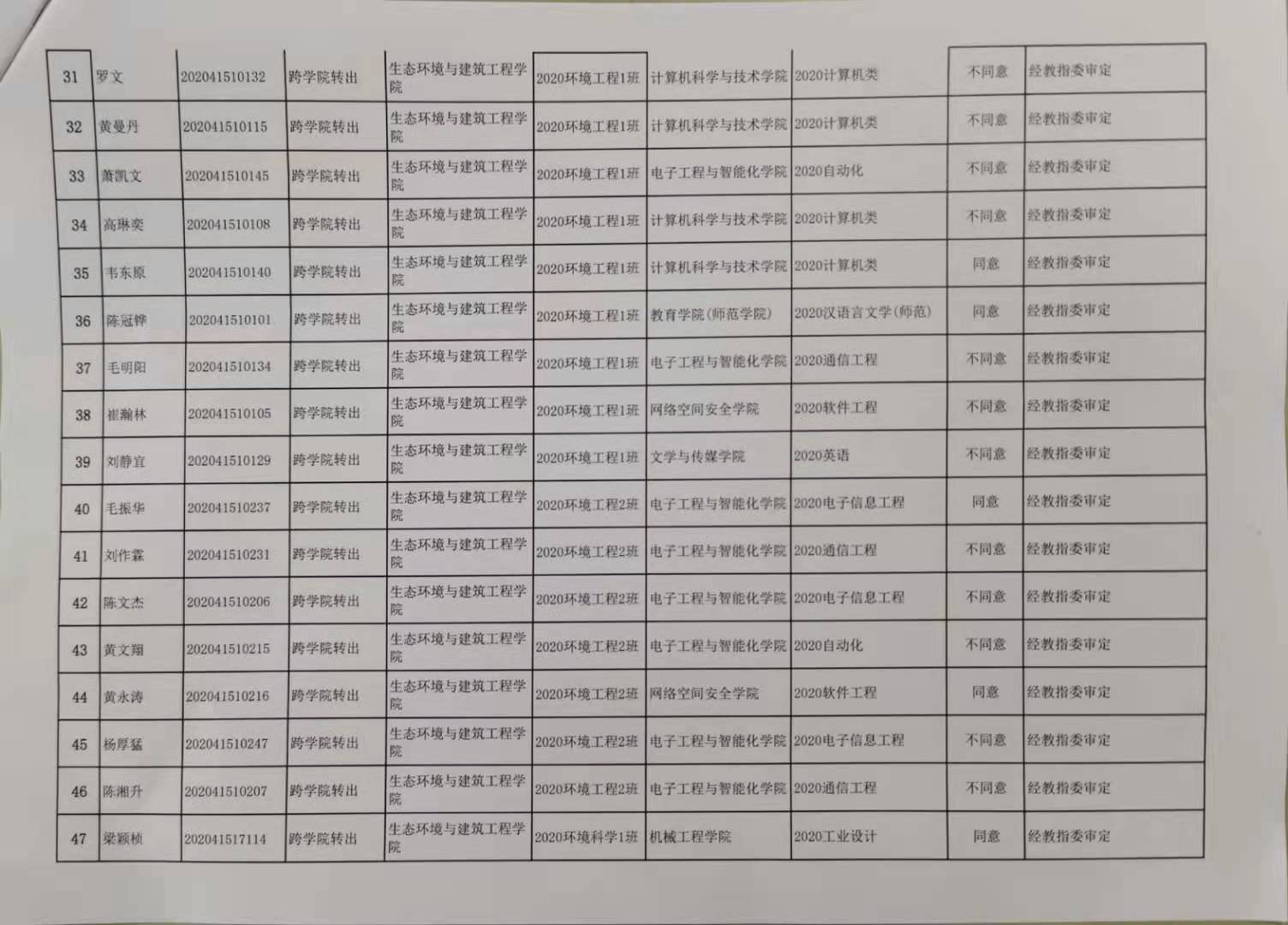 根据学校、学院转专业审批工作要求,爱爱视频 各专业转专业同意人数比例不超过本专业总人数的5%。因此,土木工程专业同意申请限额8人,工程管理专业同意申请限额5人,环境工程专业同意申请限额4人,环境科学专业同意申请限额2人,并经12.16院系教学指导委员会投票通过转专业申请名单。