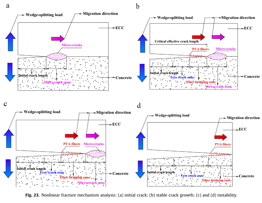 对于ECC与混凝土界面轴向抗拉性能、抗剪性能的研究,均是从经典力学的角度研究界面的宏观力学特性,然而宏观力学特性仅能反应界面的名义平均应力,无法考虑加载过程中界面内部的变化情况,以及界面本身先天存在的微裂缝、缺陷和空隙的影响,然而断裂力学能够考虑加载过程中界面内部的变化情况,以及界面本身先天存在的微裂缝、缺陷和空隙的影响,并且断裂韧度同时包含强度和变形两方面的信息,因此在盐冻融循环作用下界面的断裂韧度能够更加敏感、准确、全面的反应界面的损伤程度、损伤规律。
