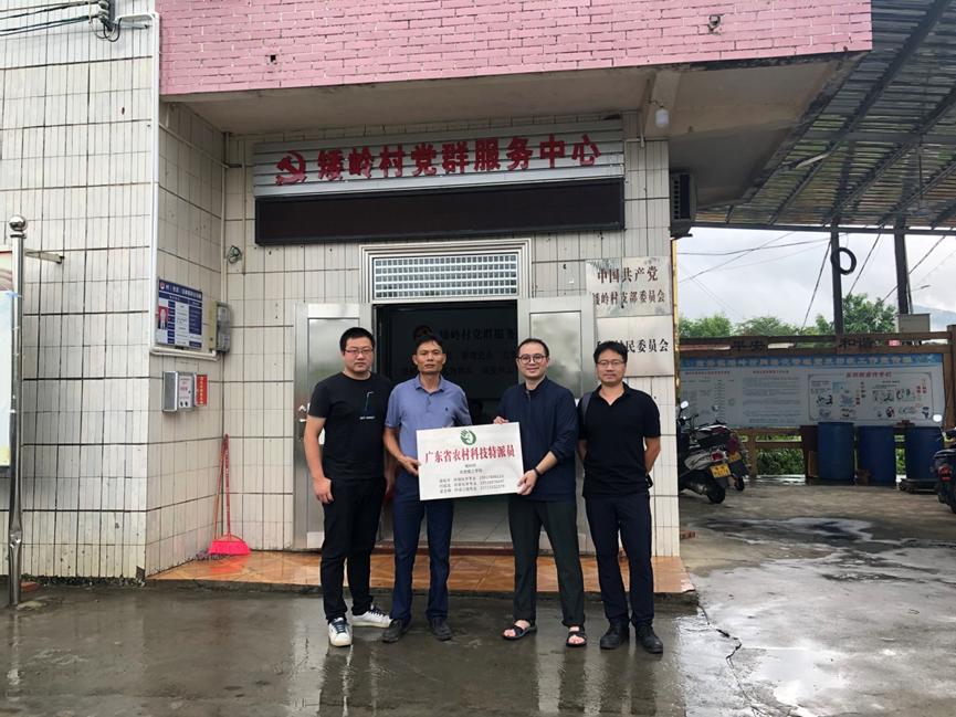 图2 三位农村科技特派员与矮岭村村委黄卓庆主任进行授牌仪式
