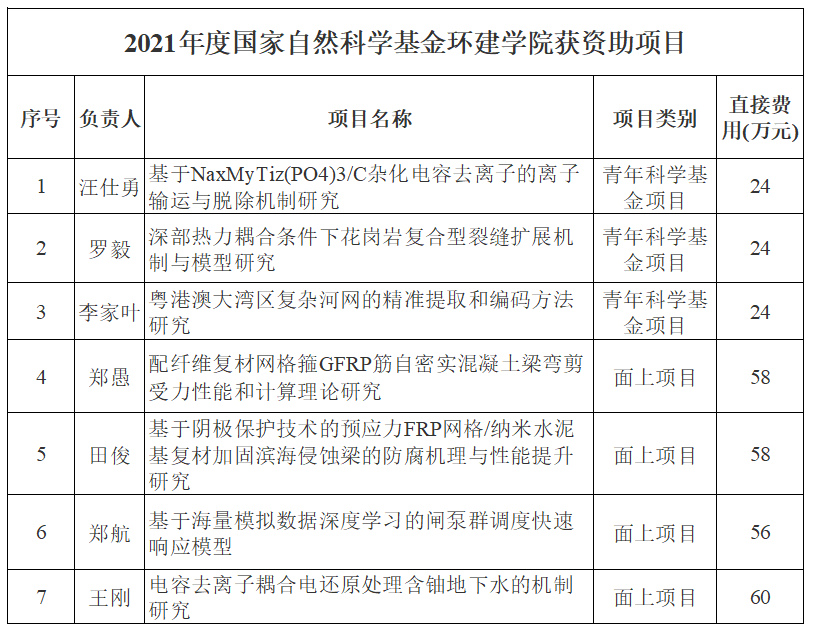 2021年8月18日,2021年度国家自然科学基金项目评审结果正式揭晓,根据本次公布的结果显示,爱爱视频 喜获资助项目7项,其中面上项目4项,青年基金项目3项。相比2020年度获得资助7项青年基金项目,本年度爱爱视频 获面上项目的数量居校内第1位,说明爱爱视频 青年教师在获得青年基金后得到进一步的发展提高,是学院人才引进青年教师逐步成长的标志,希望以前拿过青年基金的老师要提前准备,开始准备新一轮基金申报,形成科研项目的可持续性立项!再次祝贺获得立项资助的各位老师!