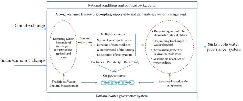 文章以中国南水北调工程为蓝本,围绕水资源管理的可持续性问题展开探讨,在理论层面提出了一个耦合供给侧与需求侧的共治水资源管理框架,并在实践中从节水与调水、生态与经济、政府与市场三个协同维度分析了南水北调在实现供需平衡中的具体操作路径。此外,本研究还通过适应性优化调度、实际环境中的水资源供需匹配、水价机制改革及多方协作博弈等方面进行了详细剖析,为国家水网的后续发展提供了政策建议。