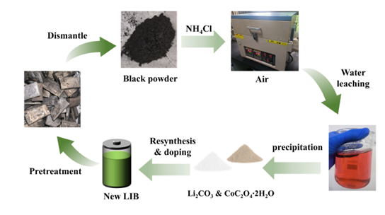 在废旧锂离子电池数量不断增加的背景下,迫切需要探索正极再生和升级再造解决方案,以减少环境污染,促进资源再利用,满足对高能正极材料的需求。本文介绍了一种闭环回收方法,该方法不仅可以从废旧锂离子电池中回收钴和锂元素,还可以将它们转化为高压 LiCoO2(LCO) 材料。