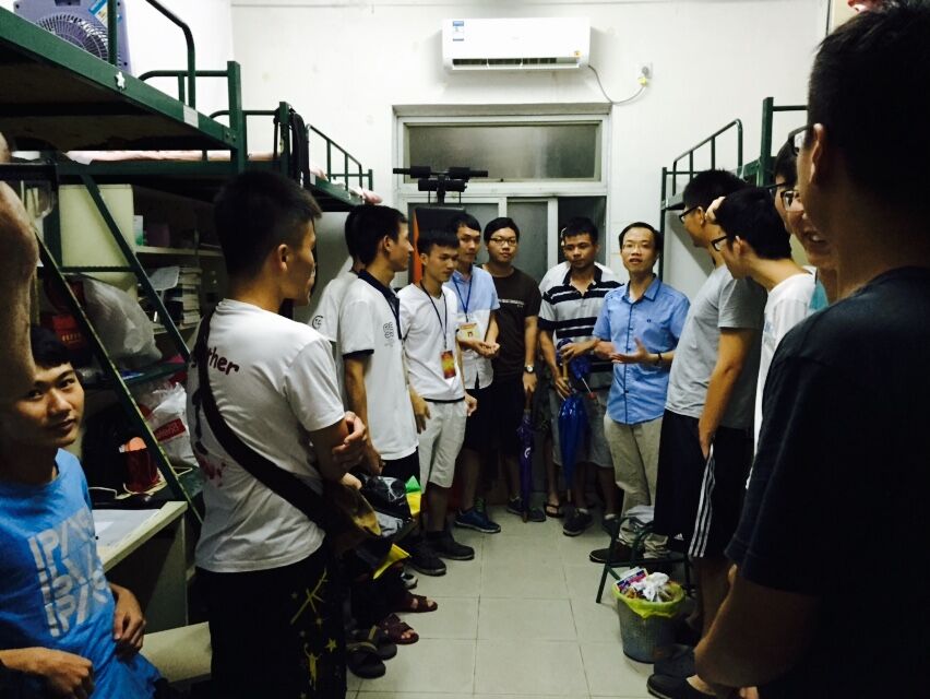 辅导员文锦枢走访2014级学生宿舍,随行的有环建学院党总支、团总支、学生会干部代表。