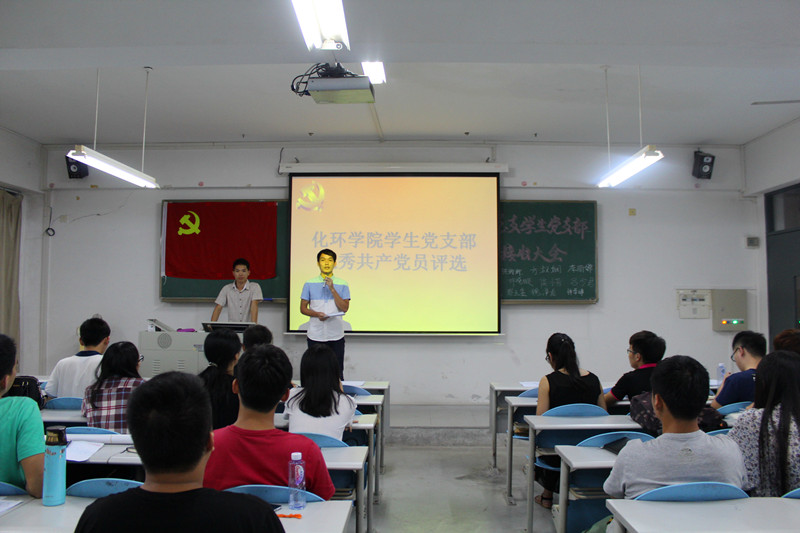 2015年10月28日晚上21:30,环建学院党总支学生党支部在6D405课室举行评选优秀党员会议 ,32名党员出席了本次会议,会议由支部书记李尧主持。