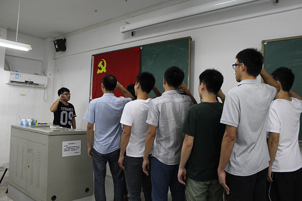 2015年5月27日晚9点30分,环建学院学生党支部组织11名新接收的预备党员在6D403课室隆重举行庄严而神圣入党宣誓仪式。宣誓仪式由环境、应化党支部书记邓日威主持。