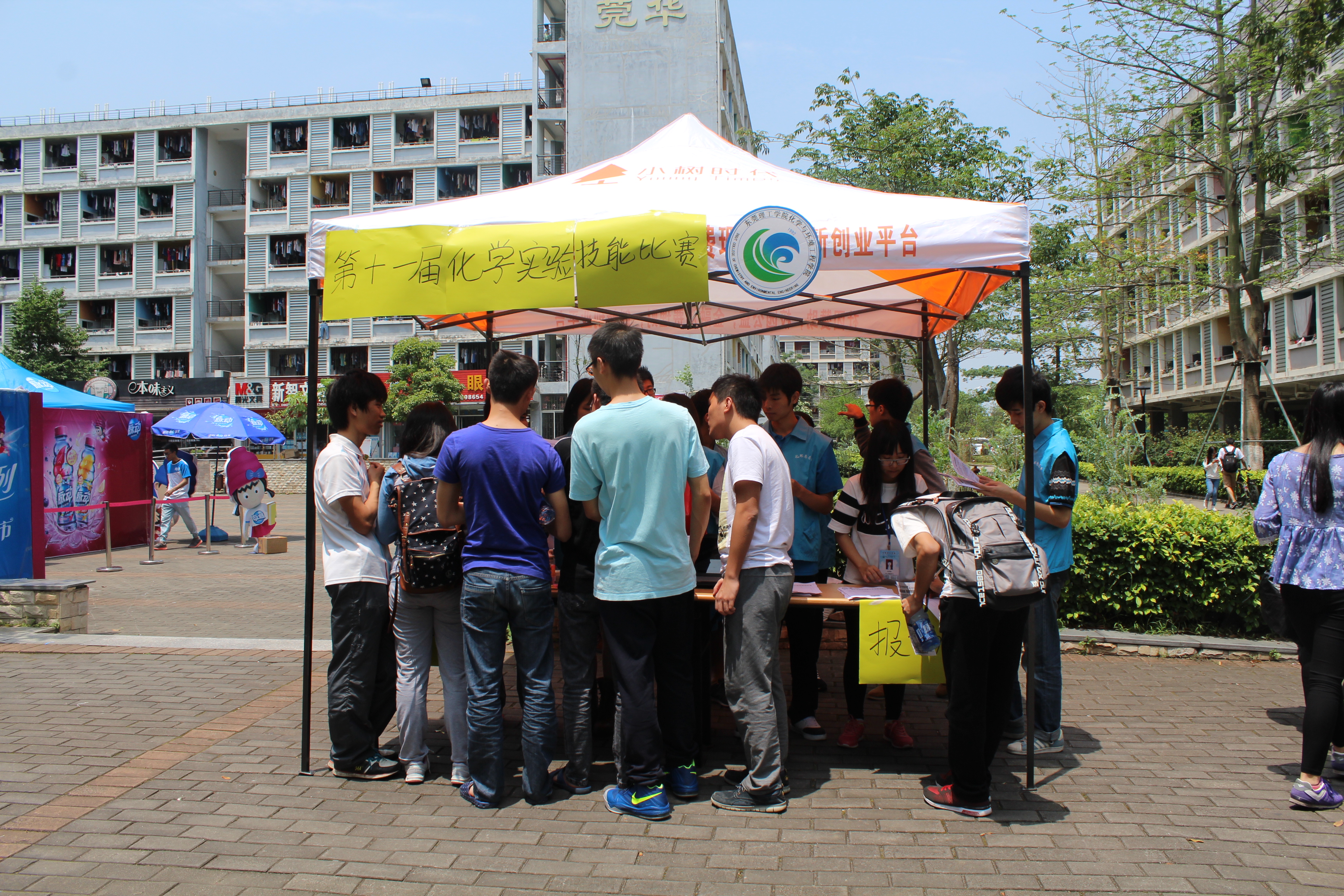 第十届科技学术节之第十一届化学实验技能比赛即将来临。在此之际,环建学院学生会展开大力宣传,于2015年4月21日至23日在下沉广场摆设摊位向全校学生介绍比赛相关事宜,同时接受现场报名。