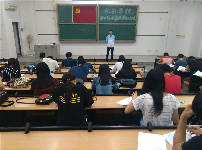 2016年4月17日晚7点30分,环建学院学生党支部组织第45期发展对象于6E306课室进行校党课模拟考试。学生党支部书记李尧担任监考官,32名发展对象参加了本次考试。