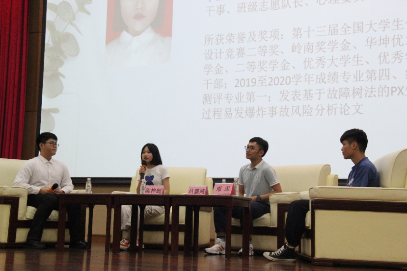 在松山湖校区学术会议中心报告厅举行 “大学有理,劳逸有法”优秀师兄师姐分享会。出席本次分享会的嘉宾有辅导员雷菲,邓忠师兄,吕嘉鸿师兄,陈梓超师姐以及2020级新生。