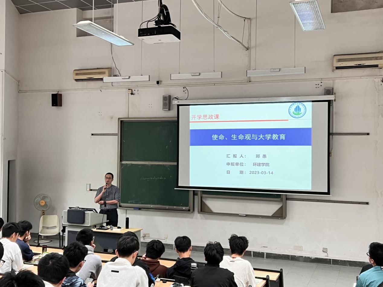 院长郑愚教授在教学楼6F101为2022级土木工程4、5、6三个班学生讲授新学期“思政第一课”。授课题目是《使命、生命观与大学教育》。