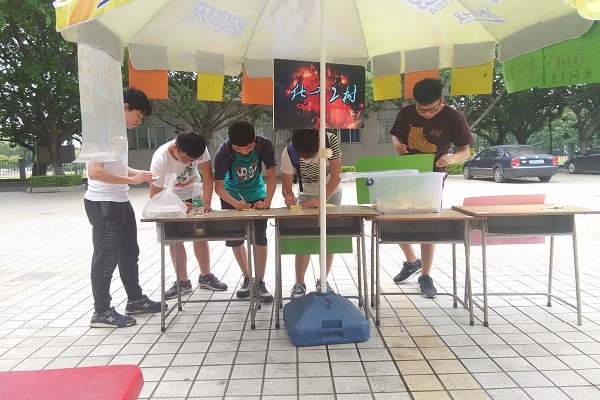 在团员干部的全力布置下,活动终于正式开展。通过其他团员干部拍照的反馈,依稀可以看出活动的火爆程度比起其他有人的会场有着一定的区别。后来陆陆续续也有学生为还网络一份清朗付出自己的一份绵薄之力,投下自己的对霾型网络的意见。