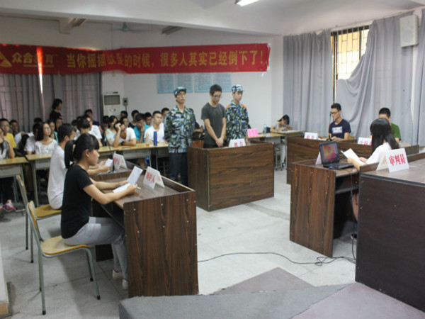 本次主题团支部会议由邓洁谊担任主持人,她先进行“拍案庭审“案件的讲解和主题切入,解说完毕后,青年团员通过观看一段由该团支部自行制作的视频深入了解案件的开端发展,接下来便正式进入庭审环节。分别由团支部书记陈美琪担任书记员,庞康凤担任审判长,钟进杰和王治卫担任审判员,庄勤佳担任公诉人,卓军盛担任诉讼代理人,汪健明担任被告人,李素和朱志勇担任辩护人,接下来对2013年复旦投毒案进行分析与庭审辩答,在庭审过程中全场保持肃静,全体团员都认真观看这次的”拍案庭审“,适时记录。