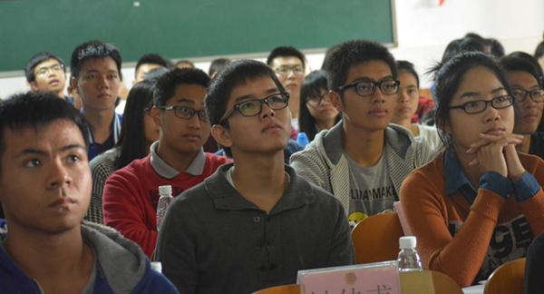 10点20分时,辅导员陈泳源为新团干授课——《如何做好一个学生干部》。他以自己的所见所闻配之风趣幽默的语言令整一个课堂变得活泼有趣,指出学生干部的价值不是取决于自己在什么样的位置,而是取决于自身能在组织里发挥的作用。