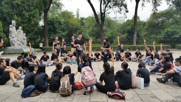本次团支部会议活动主要分五部分进行:一、团员青年现场教折叠纸花;二、演讲者做回顾历史的演讲;三、全体向革命烈士碑献花并奏唱国歌;四、历史知识竞答;五、全体团员青年以游戏形式记忆核心价值观。全体青年团员经过整合分为了四个小组,分别为执行组、策划组、后勤组和新闻组,来共同完成以上五项活动任务。