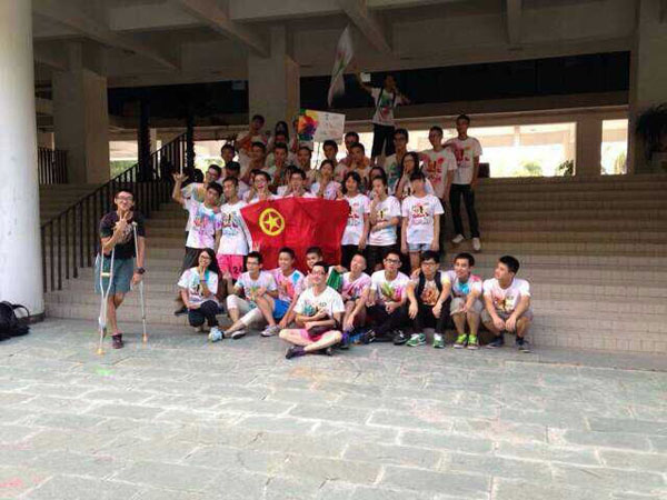 作为主题团支部会议的实践部分——coIor run拉开序幕,团员们积极参与,热情高昂,认真参与其中。首先由团支书发起倡议,讲解注意事项,让团员们健康、安全进行运动。然后,由团员干部带领大家按原定路线进行青春彩跑,展现个性魅力,丰富课余生活。各团员青年从足球场出发,绕跑跑道半圈后,便开始真正意义上的彩跑——环绕校园跑,各团员青年从足球场出发,他们设置了三个撒粉站,当团员们经过的时候他们会撒上颜色不一的彩粉,五颜六色的彩粉随意而又自然地粘在衣服上,待他们跑过终点——人才之星时,每个团员的衣服都显现出斑斓之美。