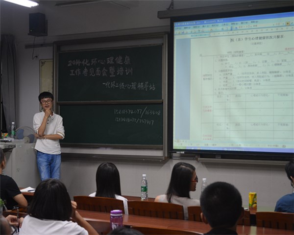 会议伊始,二级心理辅导站的新干事先进行了自我介绍,与各班心委相识以便以后心理工作的开展。接着是副部蔡舜娥针对心理调查月报表如何填写、填写过程中应注意的细节进行了详细、全面的讲解。接着王一博老师为大家进行培训,首先提了一个问题“为什么选择做心委?理由是什么?”并提出了做为心委最重要的是“观察与汇报”,在问答互动中同学们积极与王一博老师互动,针对同学们提出的疑惑以及生活上遇到的难题进行了解答。主持人蔡舜娥也和同学们分享了一年以来自己作为心委的经验以及遇到难题的一些解决办法,增强了同学们对今后做好工作的信心。最后陈泳源老师为此次会议做出总结,并希望在场的同学提高责任心认真做好心委的工作,多观察、多与班里的同学沟通交流,配合二级心理辅导站做好心理调查工作等等。