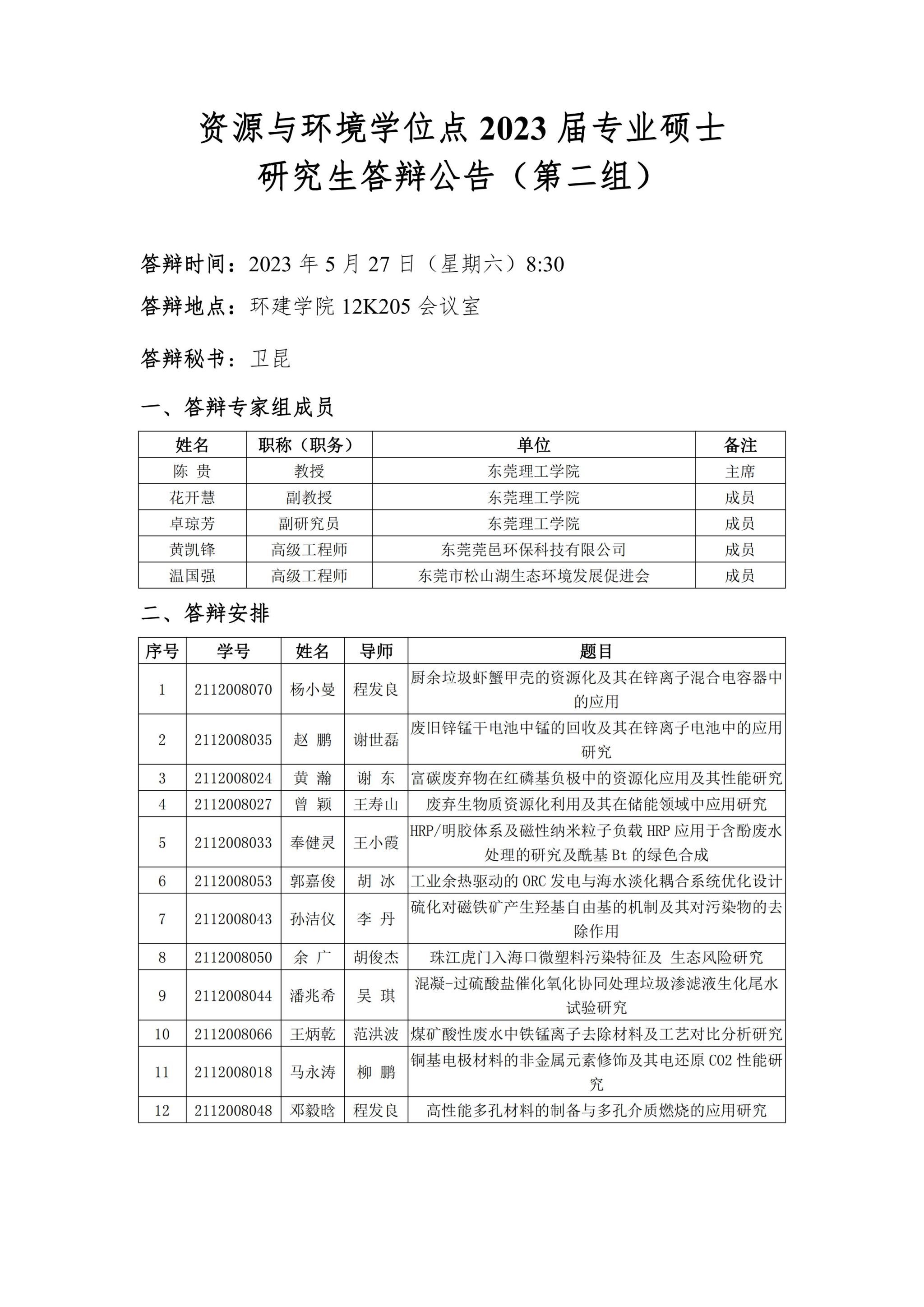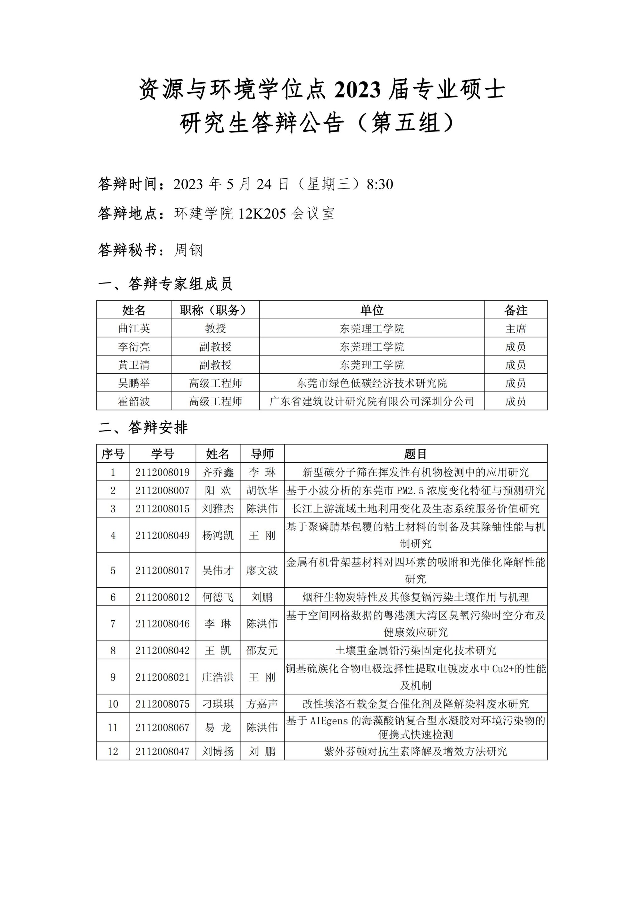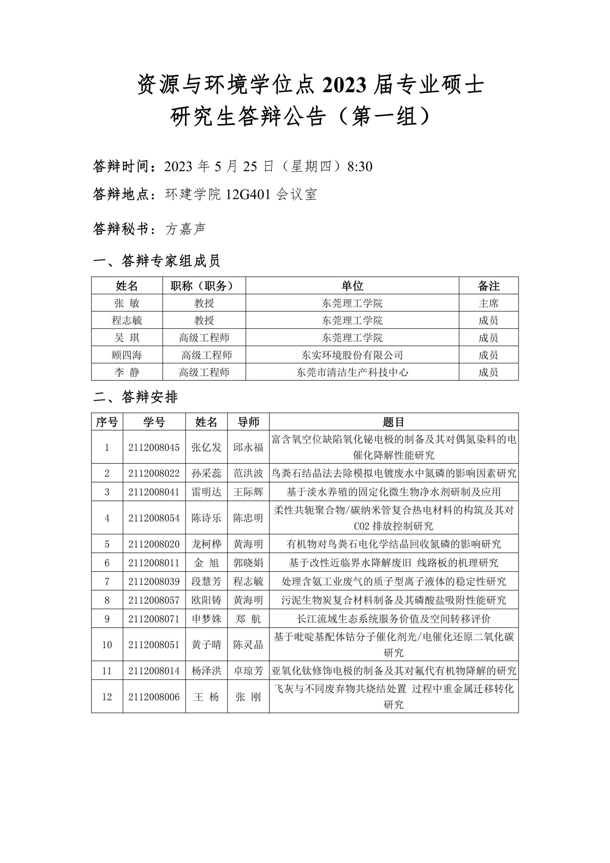 资源与环境学位点2023届专业硕士研究生答辩公告