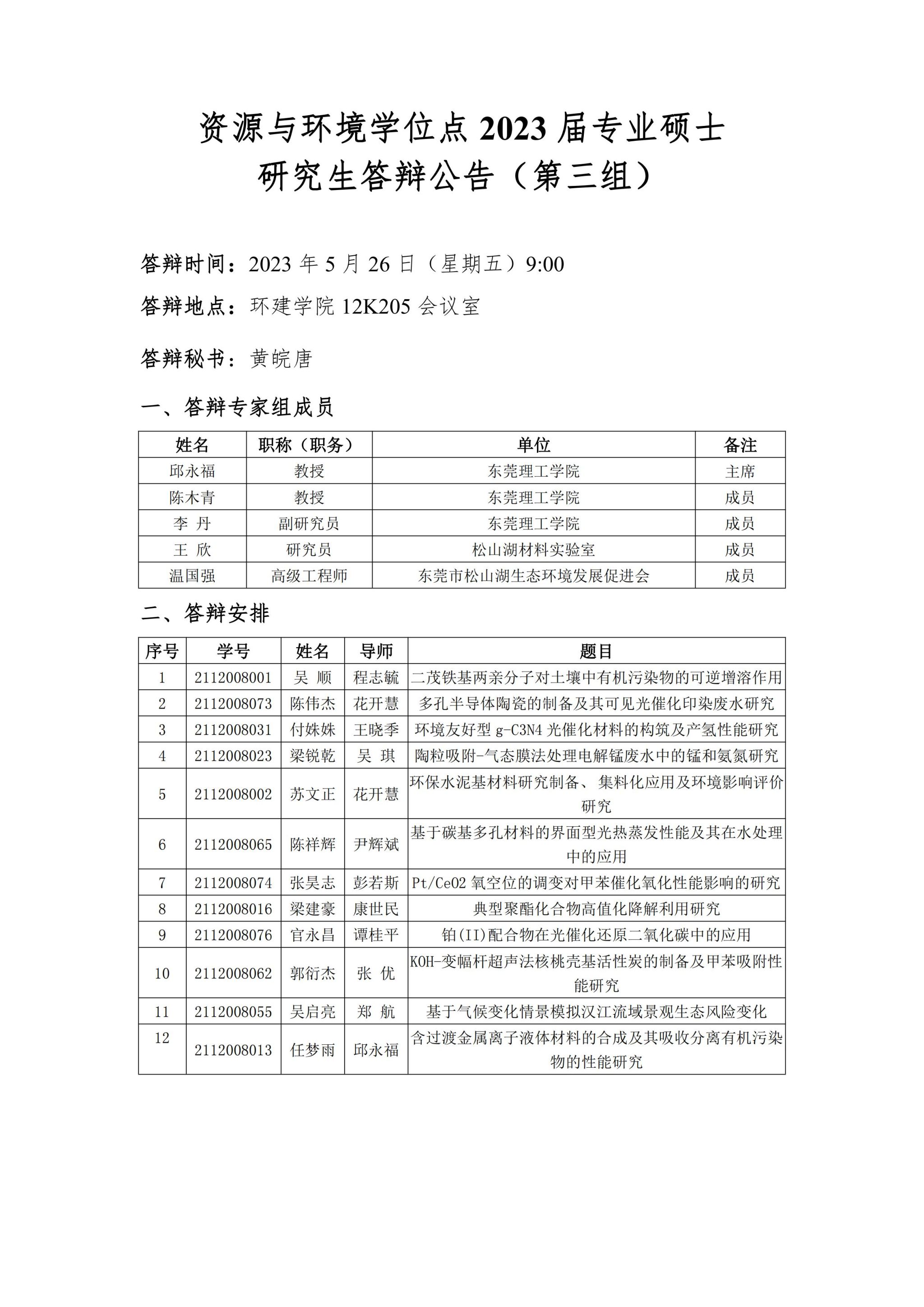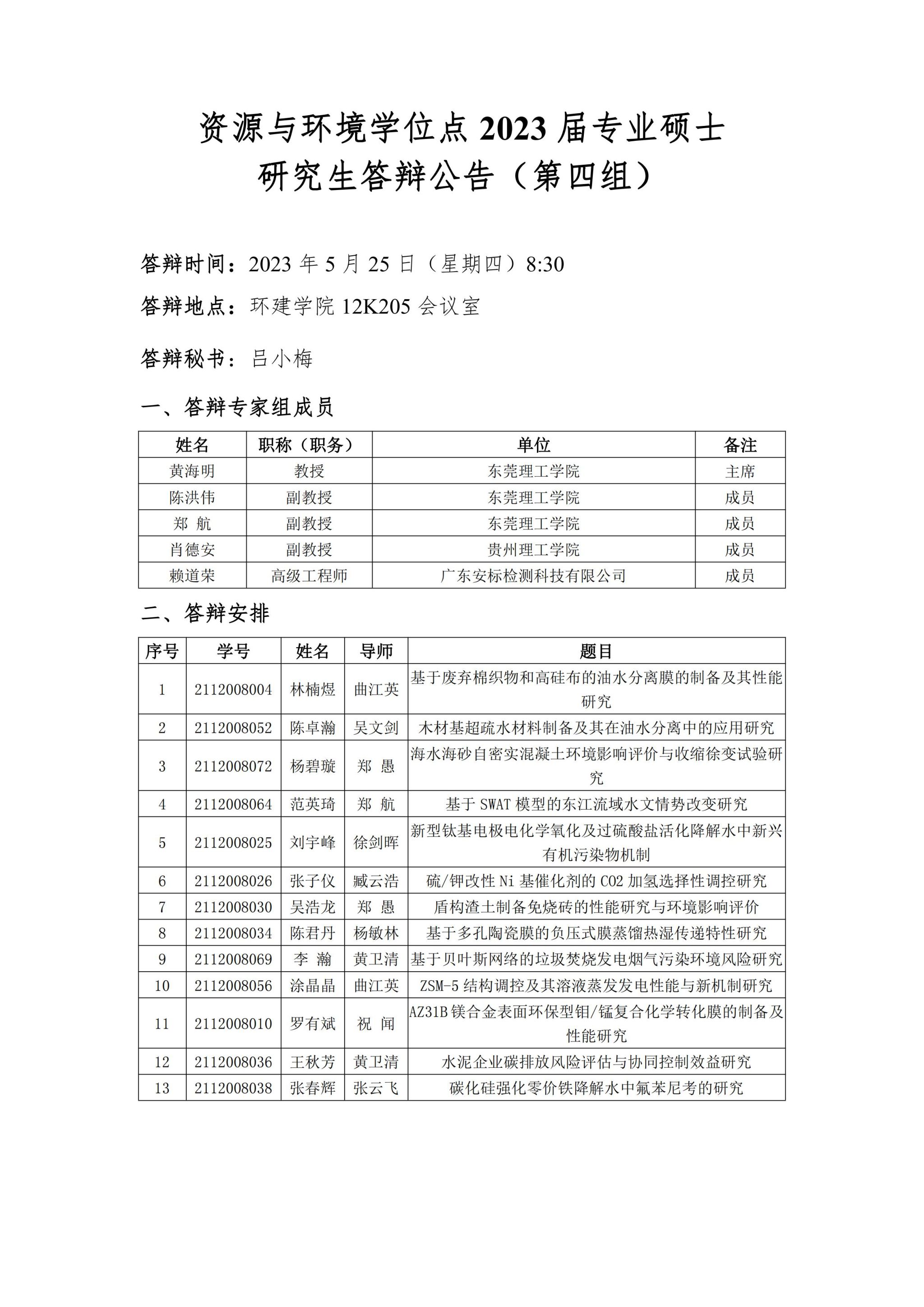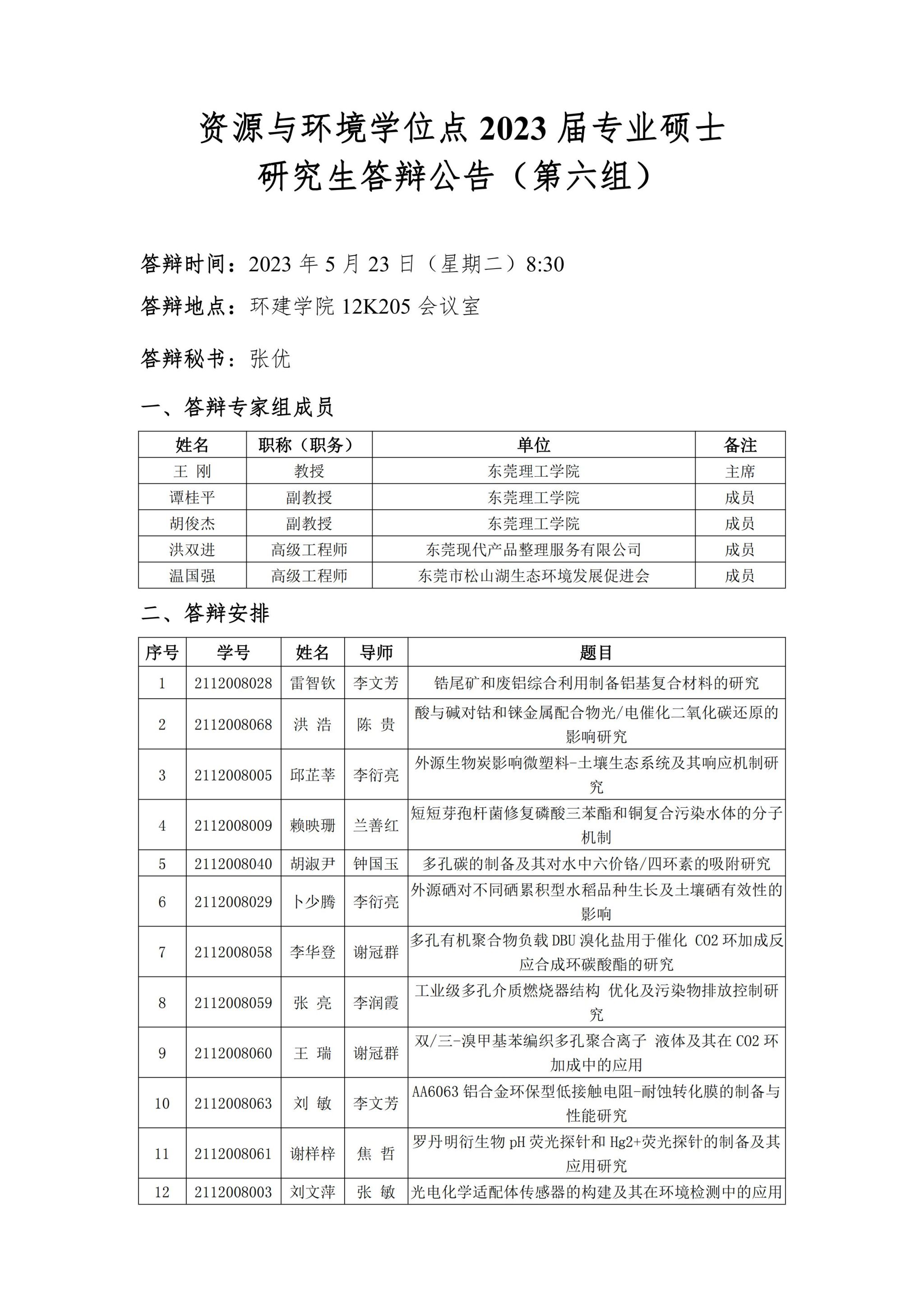 资源与环境学位点2023届专业硕士研究生答辩公告