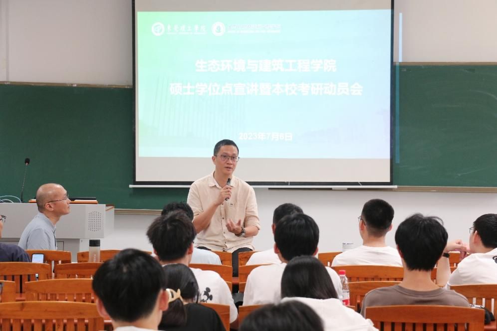 随后,丁其乐博士和彭若斯博士分别进行硕士学位点介绍。丁其乐博士就爱爱视频 土木工程和土木水利学位点的师资力量、研究方向、人才培养方案及职业规划等方面向同学们详细介绍。彭若斯博士作资源与环境学位点的宣讲,着重介绍资源与环境专业的研究方向、专业特色和师资团队。