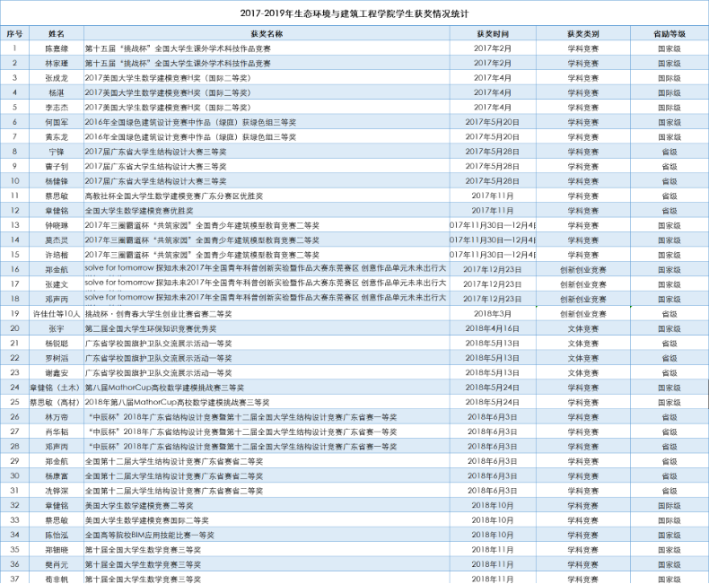 现有环境工程(含卓越计划班)、土木工程、工程管理、建筑学及环境科学等五个本科专业,其中环境工程和土木工程专业为原一本招生专业。师资队伍壮大,现有教职员工140人,教授35人、副教授42人。目前建设有6个省级工程中心、1个市级公共技术服务平台、7个市级重点实验室。自学院开设以来,建设成果颇丰。根据中国校友会网2019年本科专业排行榜,环境工程专业全国排名46位(前22%),广东省排名第三位。