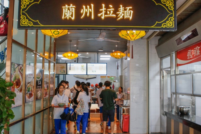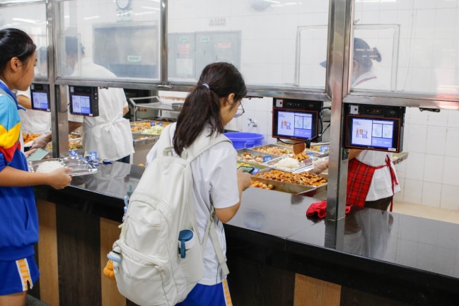 第四站,访学队伍体验高校食堂。同学们在学校的第一饭堂的多种风味饭菜窗口,自由选择,尽享美味。