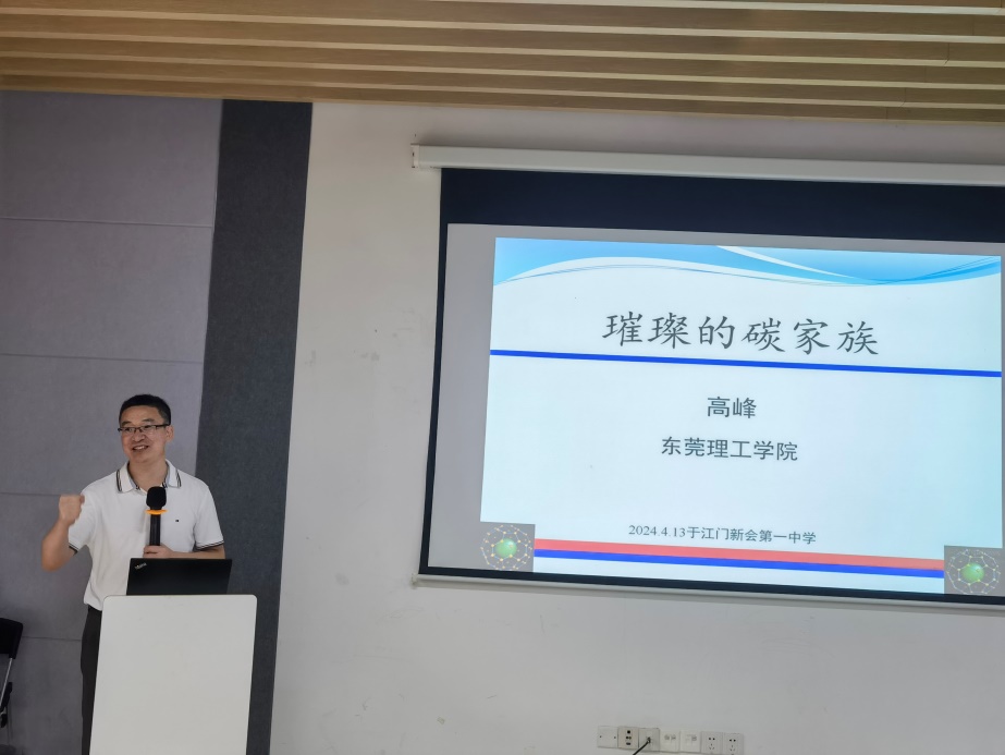 第五站,午饭后的同学们散步少许,来到学生活动中心的共享课室聆听高峰副教授的讲座。高峰副教授首先给同学们分享了在2024年4月13日在新会一中作分享讲座的情景,随后以《璀璨的碳家族》为题,介绍了金刚石、石墨、石墨烯、足球烯等碳单质的结构和性质的关系、重点揭示了石墨烯发现过程中所蕴含的科学思想和科学方法,鼓励大家保持好奇心、不迷信权威、树立目标和持续努力,相信大家一定能够成功。