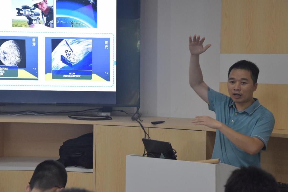李家叶博士主要介绍了卫星地面接收站的一项重要应用领域,即气象预测,他通过卫星拍摄的清晰的气象云图向大家讲解其基本原理,随后带领师生们近距离接触并观察我校先进的航天科技设备。