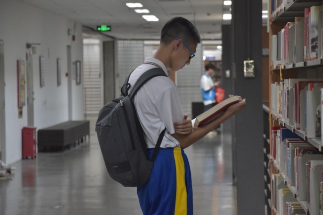 第三站,访学队伍走进图书馆。踏进馆中,映入眼帘的是白色高大的书架,其上是知识的海洋,吸引着同学们与之留下合影。随后,在志愿者的引导下,新会一中的师生们参观了图书馆的各个功能区域,同时也看到认真阅读学习的莞工学子,他们表示,深切体会到了我校浓厚的学习氛围。