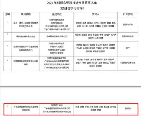 本次创新东莞科学技术奖共评选出2项技术发明奖、20项科技进步奖,其中我校作为牵头单位获奖1项,作为参与单位获奖3项。