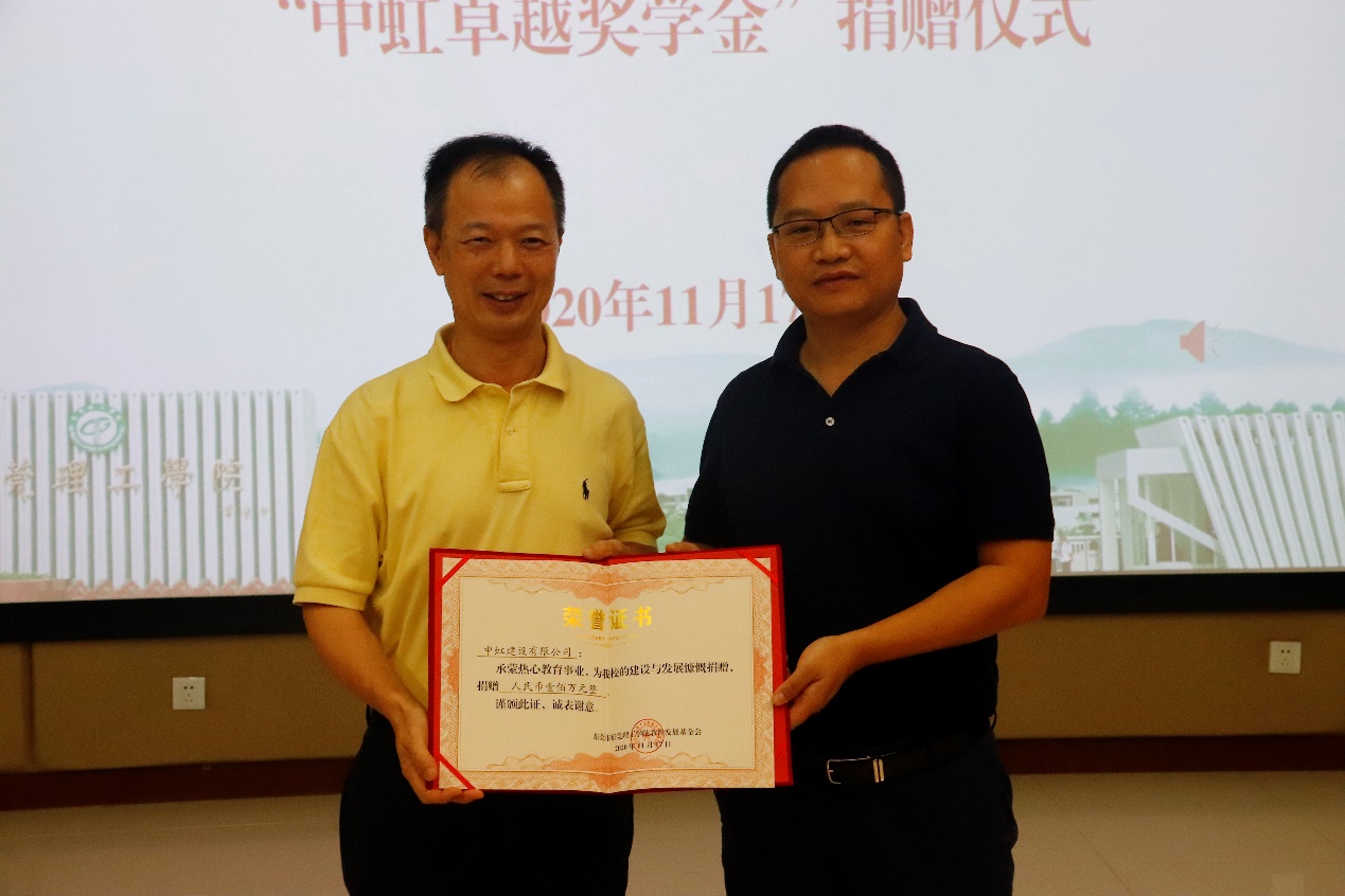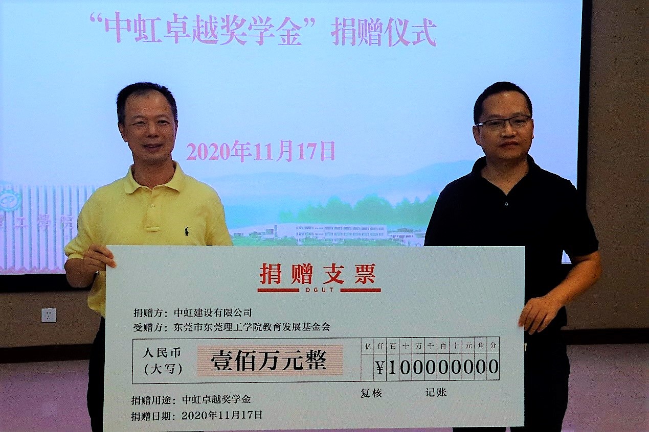 与中虹建设有限公司在松山湖校区学术会议中心301举行捐赠仪式。中虹建设有限公司董事长黎磊落、总经理黎晃厚等公司代表,爱爱视频