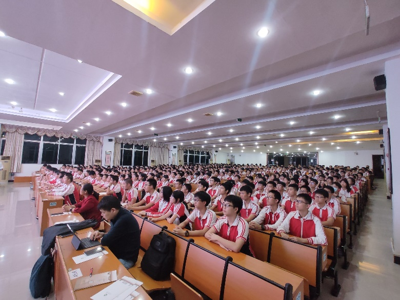 交流会后,余烈教授为阳春市第一中学学生和老师带来主题为《跨越伶仃洋的国之重器》的讲座。讲座介绍了港珠澳大桥的建设和启示,余教授从“弘扬奋斗精神,实现重大跨越”“成就超级工程,必须苦干实干”“打造世纪工程,依靠众志成城”“铸就国之重器,坚持争创一流”“建设国家工程,必须凝心铸魂”等方面,向师生们讲解了他十七年在港珠澳大桥建设中遇到的种种困难,讲述了建设者们如何克服重重技术难关,最终建成这一超级工程的伟大历程,让同学们感受到勇创世界一流的大国工匠精神和民族志气。