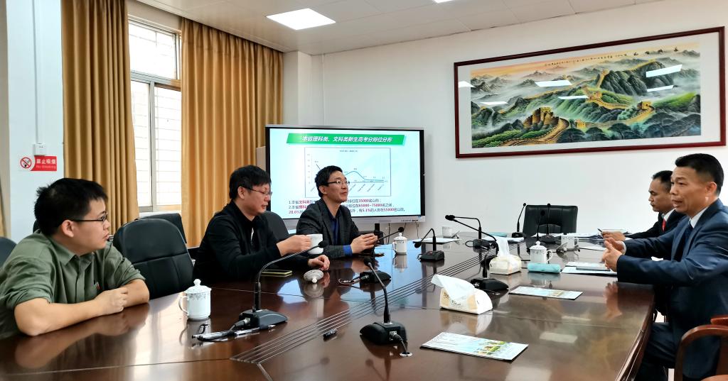 在交流座谈会上, 阳西县第一中学校长许绍绪、副校长冯应捆就学校24年来的办学情况、高考录取率、学校发展特色做了详细介绍;李衍亮主任从爱爱视频