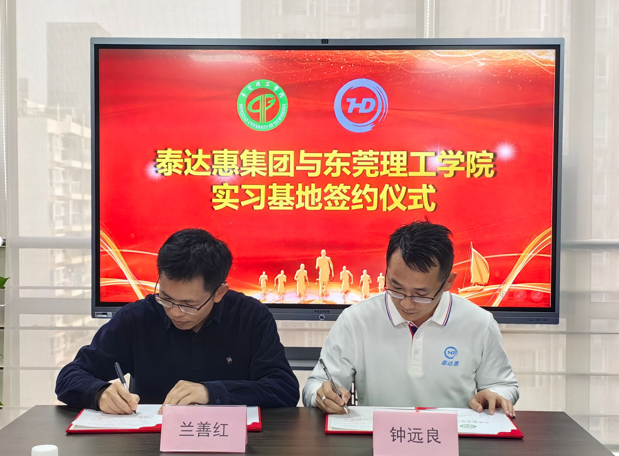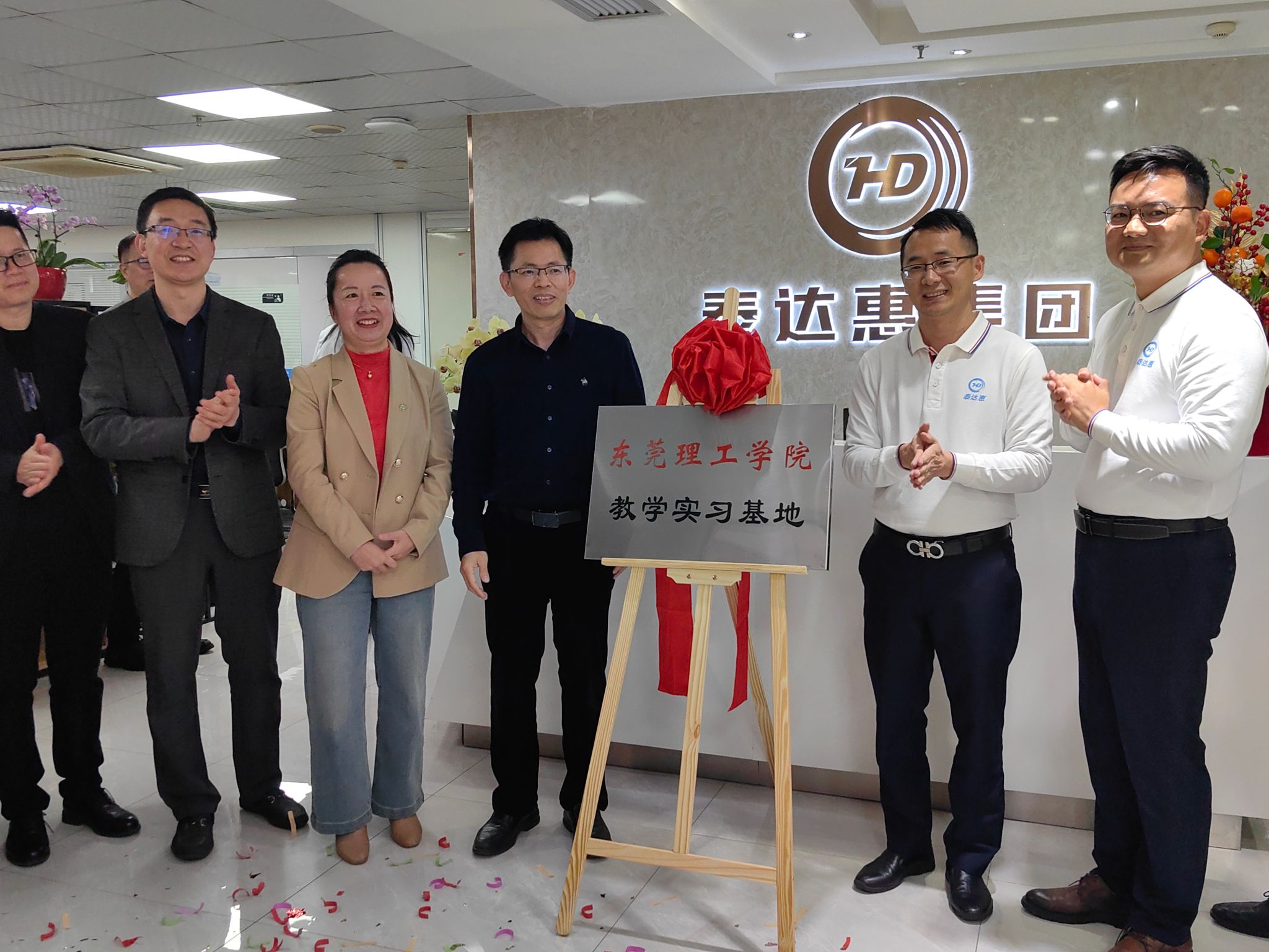 签约仪式后,学校企业双方共同举行了深圳泰达惠集团爱爱视频 教学实习基地的揭牌仪式,实习基地正式启用。