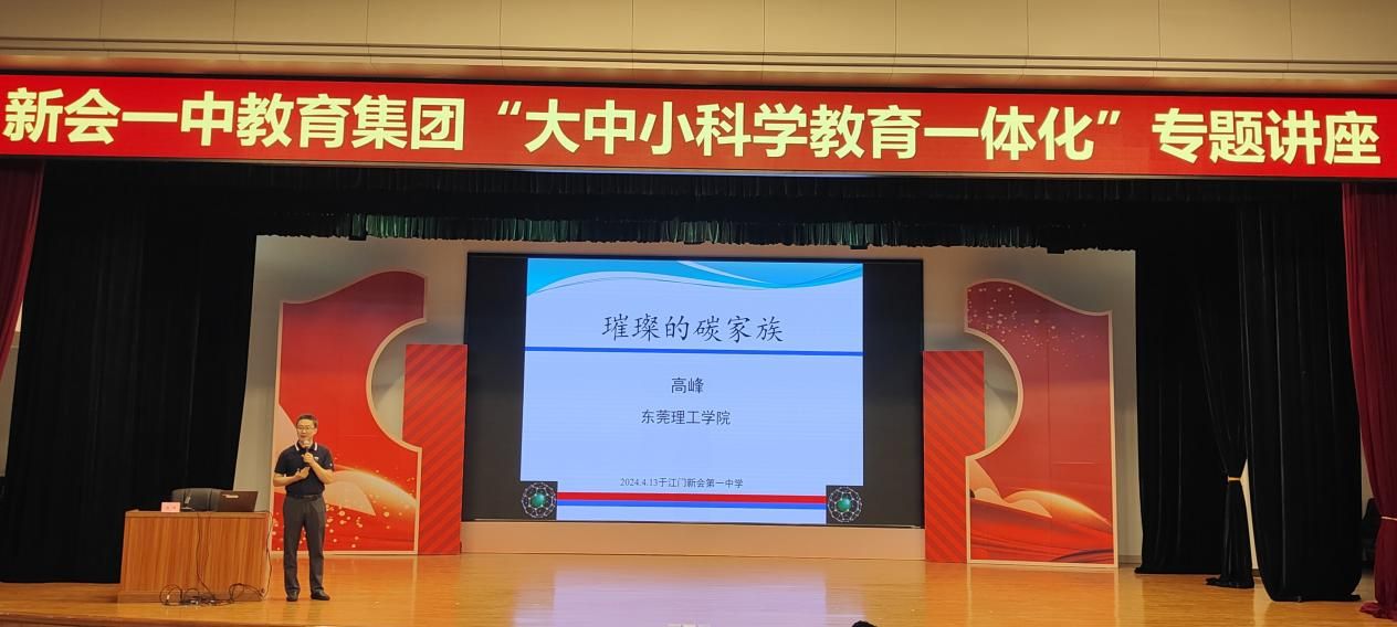 同日,高峰副院长在新会一中举办了题为《璀璨的碳家族》的讲座,向师生们介绍了碳材料的多样性及其在现代科技和环境保护中的重要作用,激发了学生们对环境功能材料研发的兴趣。