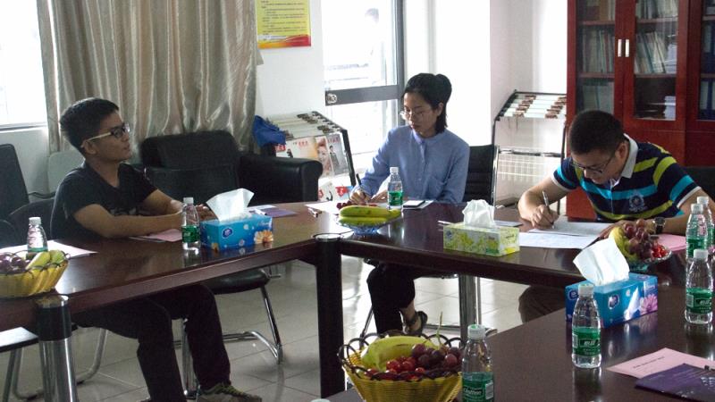 会议伊始,辅导员姜蓉老师向同学们介绍了冠力胶业有限公司的企业代表。随后,执行总监胡德志先生向同学们详细介绍了冠力胶业有限公司的企业情况,并告诫同学们要珍惜校园生活,在有限的大学时光里好好学习,一定要珍惜大学的学习氛围,注重自我培养,努力实现自我价值。接着,会议进入核心环节——面谈环节。胡先生分别与20名拟获奖同学进行一对一面谈,面谈内容主要涉及学生大学个人总结、学生对专业前景的看法及见解、学生个人职业规划和学生个人目前现实困难等方面,从而进一步了解了同学们在学习、工作和生活各方面的综合表现。