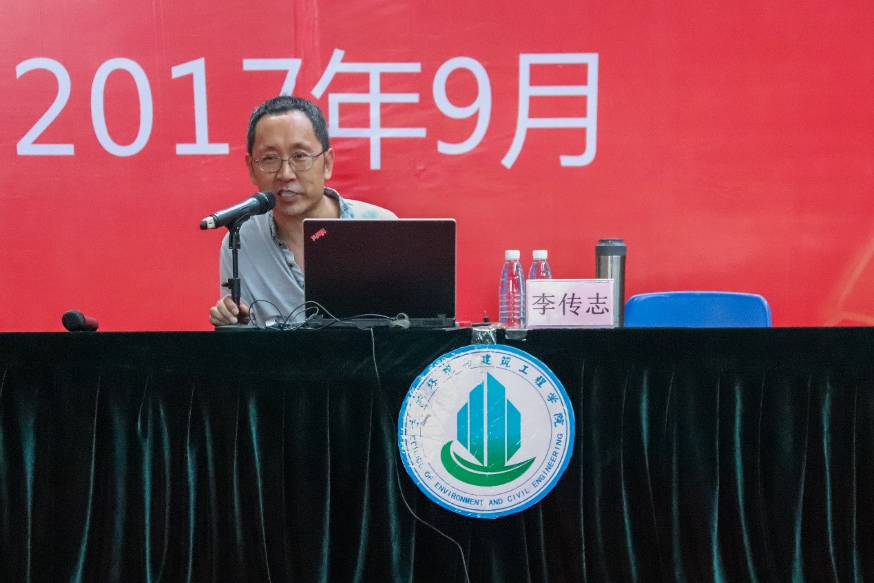 辅导员文锦枢老师主持,邀请经管学院李传志教授为主讲。