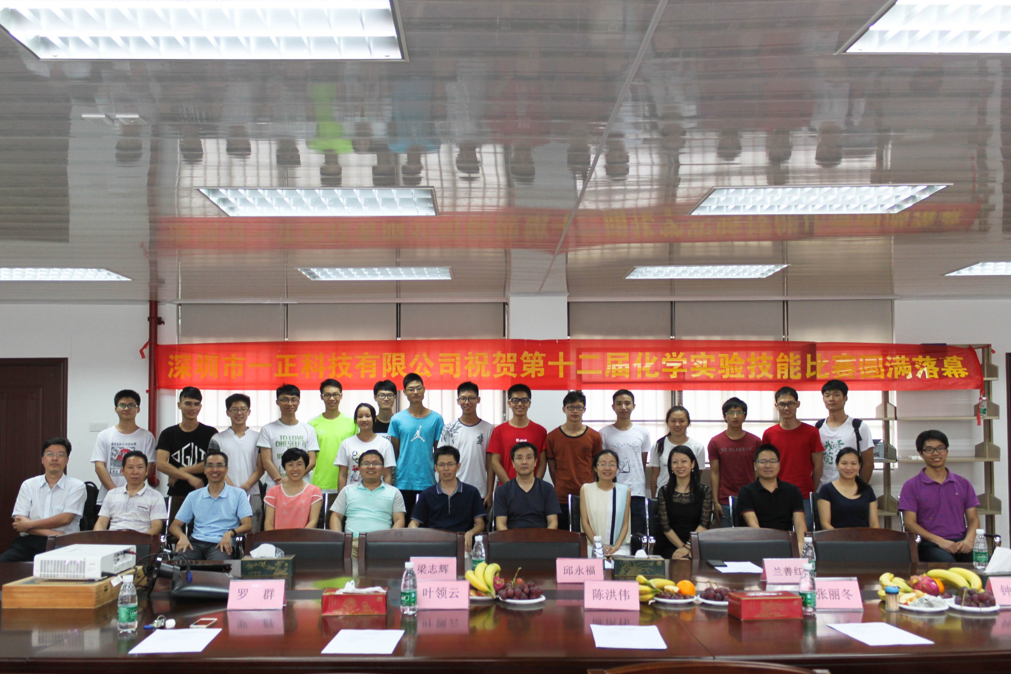 2016年5月27日14时30分, “一正杯”第十二届化学实验技能比赛颁奖礼暨闭幕式于我校松山湖校区12K205成功举办。与会人员有化学与环境工程学院副院长兰善红老师、党总支书记君光老师、邱永福教授、梁志辉主任、深圳市一正科技有限公司代表钟明、张丽冬及评委组老师们刘传生、叶领云、陈洪伟、刘啸天、柳鹏、罗群。本次活动旨在回顾、总结,并对在本次比赛中表现优秀的选手进行嘉奖,展望未来。