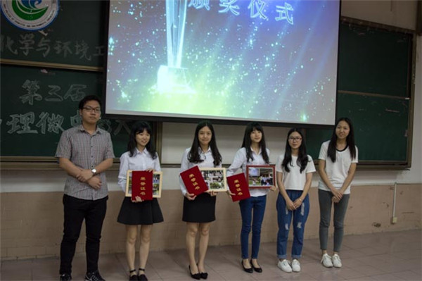 团总支副书记黄森源为本次活动致辞,他对同学们付出的努力表示肯定,并预祝各班的参赛微电影都能取得一个好成绩。紧接着,大赛播出了各班精心制作的微电影,让同学们回顾了自己的制作过程,同时,让他们感受到了他们的青春历程。作品展示完后,罗展琳师姐为大赛总结致辞,她指出,同学们制作的微电影质量都很高,但普遍存在一个问题,就是多少有些偏离本次心理微电影的主题,同时,她希望大家能够再接再厉,制作出更加优秀的作品。最终由嘉宾评委评出优秀作品:一等奖:15级工艺1班《跨出那一步》;二等奖:15级应化2班《我们曾经年少》、15级高材2班《谁的青春不迷茫》;三等奖:15级高材1班《我们》、15级应化1班《对不起,让你受委屈了》、15级环境2班《茧》。