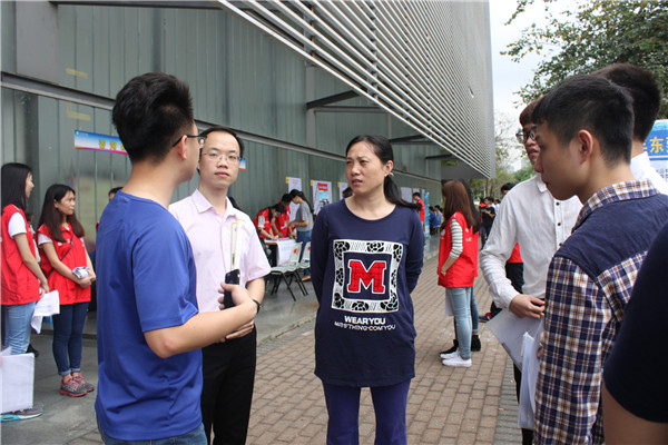 团总支书记、辅导员文锦枢老师亲身向相关企业了解相关资讯,并希望能与各企业有进一步的合作,为企业输送优秀人才的同时为学生争取更多就业平台,促进双方间的互利共赢。与此同时,袁老师和文老师积极向应届毕业生了解他们的就业方向,表现出高度的关心与支持。