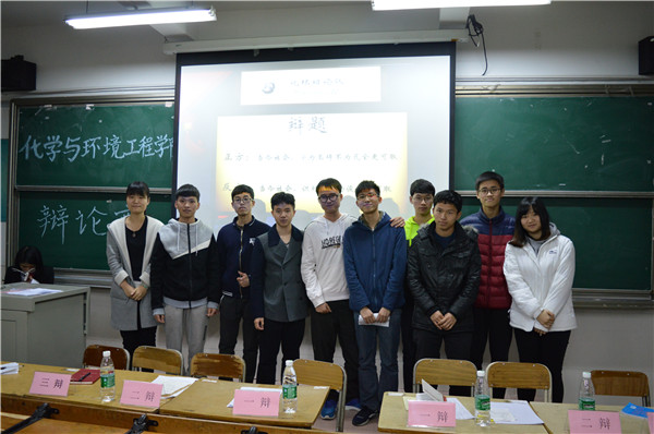 淘汰赛伊始,双方辩手你来我往,针锋相对,侃侃而谈,场下观众激情澎湃,掌声连绵不断。尤其在自由辩论环节,双方辩手再次将比赛推向高潮,现场气氛迅速升温,互动环节观赛学生热情参与,不断向辩手抛出问题。经过激烈的比赛和公正的评判,15应用化学1班,15应用化学2班,15环境工程1班以及15高分子材料与工程1班的辩论队脱颖而出,其中孙贝贝,邹淑芳,姜冰心,汪佳获得最佳辩手奖;魏丽燕,周琪雯,吴华盈,江梓培获得最佳风采奖,最后,由辩论队队长刘智彬同学为获奖同学颁奖,以兹鼓励。