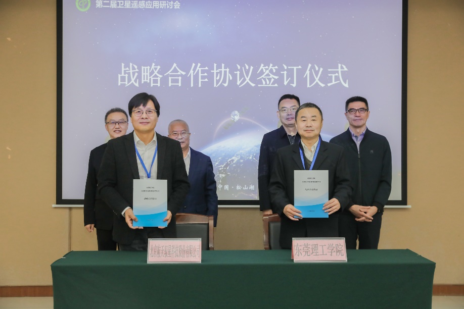 与北京航天驭星科技股份有限公司战略合作协议签订仪式。在徐勇军副校长、黄跃飞教授、庄国京研究员和赵磊董事长的共同见证下,邵颂东教授与张建华高级副总裁分别代表双方签署了战略合作协议,标志着双方将携手在卫星遥感领域开展深度合作,实现资源共享与优势互补,共同推动技术创新与应用转化。