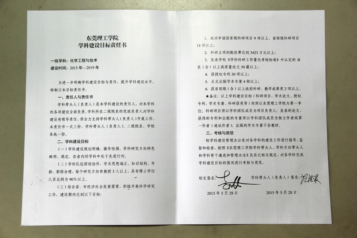 与学校签订的学科建设目标责任书