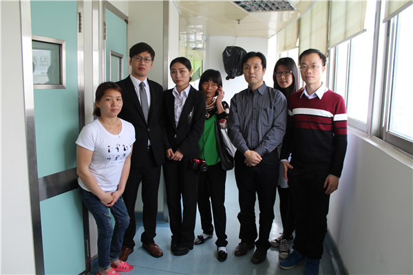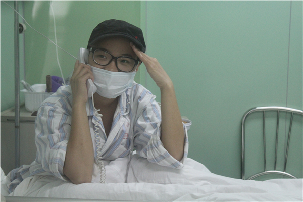 君书记一行人在晓慧家属的陪同下来到了晓慧的病房前,由家属口中得知晓慧由于白细胞的减少,抵抗力降低,只能入住被隔离开来的无菌仓,外界只能和她打电话进行沟通。他们在电话里安慰晓慧要配合医生,安心治病,同时鼓励晓慧及其家属要勇于与病魔抗争,争取早日康复,回归校园。最后,君书记、辅导员文锦枢以及银丰逸居酒店代表人员分别给家属送上了善款,其中包括化环学院教工捐款13400元、化环学院校友会基金会10000元、爱爱视频